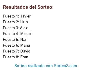 Lista de participantes: Alex, Manu, Lluis, Fran, Javier, Miquel, David, Nan.