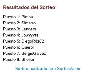 Lista de participantes: DiegoRdz82, Jowyyyts, Sheifor, Simarro, Pimba, SergioGalvez, Lenders, Querol.