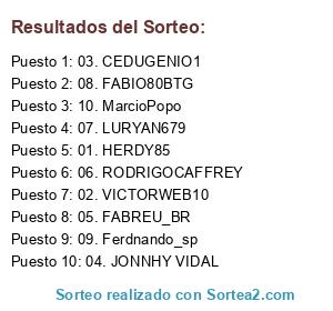 Lista de participantes: 01. HERDY85, 02. VICTORWEB10, 03. CEDUGENIO1, 04. JONNHY VIDAL, 05. FABREU_BR, 06. RODRIGOCAFFREY, 07. LURYAN679, 08. FABIO80BTG, 09. Ferdnando_sp, 10. MarcioPopo.