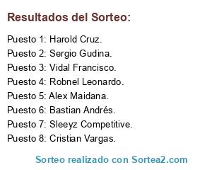 Lista de participantes: Harold Cruz., Cristian Vargas., Sergio Gudina., Robnel Leonardo., Vidal Francisco., Bastian Andrés., Sleeyz Competitive., Alex Maidana..