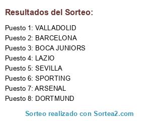 Lista de participantes: LAZIO, ARSENAL, BOCA JUNIORS, SEVILLA, BARCELONA, VALLADOLID, SPORTING, DORTMUND.