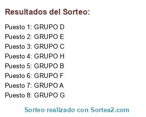Lista de participantes: GRUPO A, GRUPO B, GRUPO C, GRUPO D, GRUPO E, GRUPO F, GRUPO G, GRUPO H.