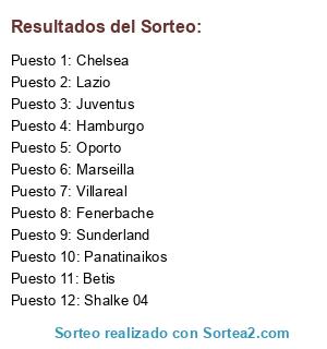 Resultados del sorteo: