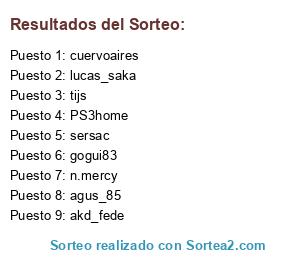 Lista de participantes: agus_85, tijs, lucas_saka, akd_fede, n.mercy, cuervoaires, PS3home, gogui83, sersac.