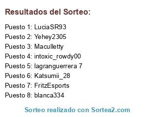 Lista de participantes: Yehey2305, LuciaSR93, FritzEsports, Maculletty, lagranguerrera 7, Katsumii_28, intoxic_rowdy00, blanca334.