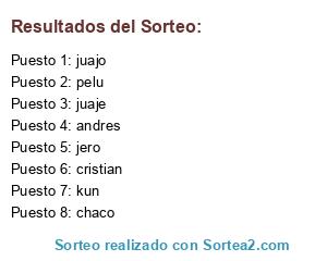 Lista de participantes: jero, kun, pelu, juajo, cristian, andres, chaco, juaje.