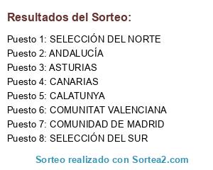 Lista de participantes: ANDALUCÍA, COMUNITAT VALENCIANA, CALATUNYA, ASTURIAS, CANARIAS, COMUNIDAD DE MADRID, SELECCIÓN DEL NORTE, SELECCIÓN DEL SUR.