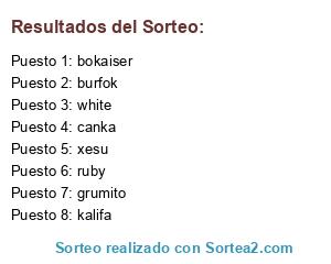 Lista de participantes: burfok, ruby, grumito, xesu, kalifa, bokaiser, canka, white.