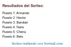 Lista de participantes: Beto, Armando, Hector, Chena, Nano, Bandian.