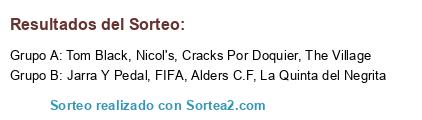 Lista de participantes: Alders C.F, Cracks Por Doquier, FIFA, Jarra Y Pedal, La Quinta del Negrita, Nicol's, The Village, Tom Black.