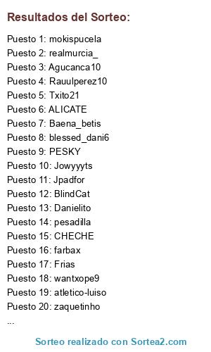 Lista de participantes: Ekoh, Cortex, Vegapes / Abforz, Rachet-king.