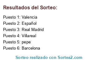Lista de participantes: Real Madrid, Español, Barcelona, Valencia, Villareal, pepe.