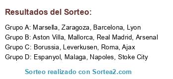 Lista de participantes: Arsenal, Aston Villa, Zaragoza, Roma, Barcelona, Real Madrid, Borussia, Stoke City, Mallorca, Marsella, Lyon, Napoles, Leverkusen, Ajax, Malaga, Espanyol.
