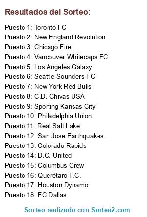 Lista de participantes: Chicago Fire, Columbus Crew, D.C. United, Houston Dynamo, New England Revolution, New York Red Bulls, Philadelphia Union, Sporting Kansas City, Toronto FC, C.D. Chivas USA, Colorado Rapids, FC Dallas, Los Angeles Galaxy, Real Salt Lake, San Jose Earthquakes, Seattle Sounders FC, Vancouver Whitecaps FC, Querétaro F.C..