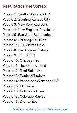 Lista de participantes: Chicago Fire, Columbus Crew, D.C. United, Houston Dynamo, New England Revolution, New York Red Bulls, Philadelphia Union, Sporting Kansas City, Toronto FC, C.D. Chivas USA, Colorado Rapids, FC Dallas, Los Angeles Galaxy, Portland Timbers, Real Salt Lake, San Jose Earthquakes, Seattle Sounders FC, Vancouver Whitecaps FC.