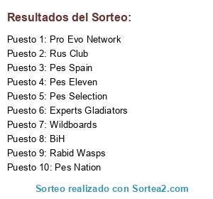 Lista de participantes: BiH, Pes Spain, Pes Eleven, Pes Nation, Pes Selection, Rus Club, Pro Evo Network, Experts Gladiators, Rabid Wasps, Wildboards.