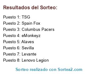 Lista de participantes: Columbus Pacers, TSG, Alaves, Lenovo Legion, Levante, Sevilla, eMonkeyz, Spain Fox.