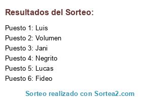 Lista de participantes: Jani, Luis, Lucas, Negrito, Fideo, Volumen.