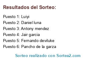 Lista de participantes: Jair garcia, Fernando deviluke, Luiyi, Pancho de la garza, Antony mendez, Daniel luna.
