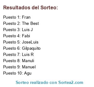 Lista de participantes: Luis J, JoseLuis, Manuli, Gilpaquito, Manuel, Fran, Fabi, The Best, Luis R, Agu.
