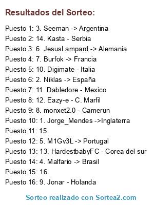 Resultados del sorteo: