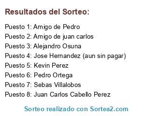 Lista de participantes: Juan Carlos Cabello Perez, Amigo de juan carlos, Alejandro Osuna, Sebas Villalobos, Kevin Perez, Jose Hernandez (aun sin pagar), Pedro Ortega, Amigo de Pedro.