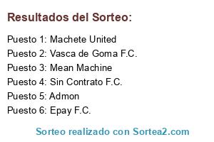 Lista de participantes: Administracion, Sin Contrato F.C., Machete United, Epay F.C., Mean Machine, Vasca de Goma F.C..
