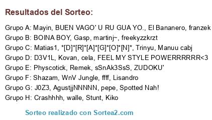 Lista de participantes: D3V1L, AgustjjNNNNN, Matias1, sSnAk3SsS, WnV Jungle, Physcotick, El Bananero, FEEL MY STYLE POWERRRRRR<3, J0Z3, Trinyu, Stunt, ZUDOKU', franzek, Mayin, pepe, martinj~, Manuu cabj, Lisandro, Spotted Nah!, ffff, BUEN VAGO' U RU GUA YO., Crashhhh, Remek, Kovan, freekyzzkrzt, BOINA BOY, cela, walle, *[D]*[R]*[A]*[G]*[O]*[N]*, Gasp, Kiko, Shazam.