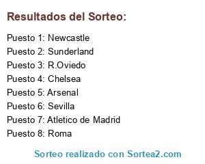Lista de participantes: Atletico de Madrid, Sunderland, Newcastle, R.Oviedo, Chelsea, Arsenal, Sevilla, Roma.