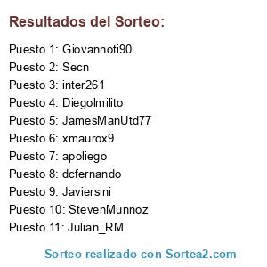 Lista de participantes: StevenMunnoz, Diegolmilito, Javiersini, Giovannoti90, Secn, Julian_RM, inter261, JamesManUtd77, dcfernando, xmaurox9, apoliego.