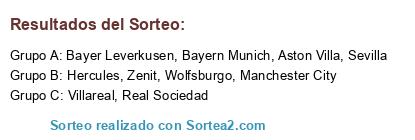 Lista de participantes: Real Sociedad, Sevilla, Wolfsburgo, Villareal, Hercules, Aston Villa, Manchester City, Bayern Munich, Bayer Leverkusen, Zenit.