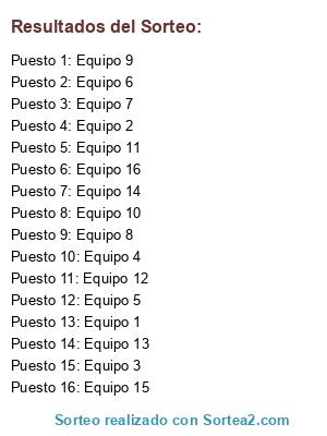 Lista de participantes: Equipo 1, Equipo 2, Equipo 3, Equipo 4, Equipo 5, Equipo 6, Equipo 7, Equipo 8, Equipo 9, Equipo 10, Equipo 11, Equipo 12, Equipo 13, Equipo 14, Equipo 15, Equipo 16.