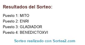 Lista de participantes: MITO, GLADIADOR, ENRI, BENEDICTOXVI.