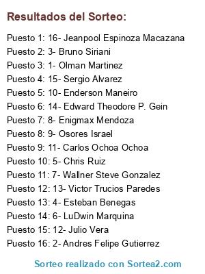 Resultados del sorteo: