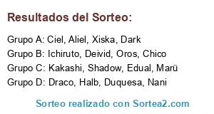 Lista de participantes: Deivid, Shadow, Kakashi, Ciel, Draco, Halb, Oros, Nani, Duquesa, Edual, Chico, Marü, Ichiruto, Xiska, Dark, Aliel.