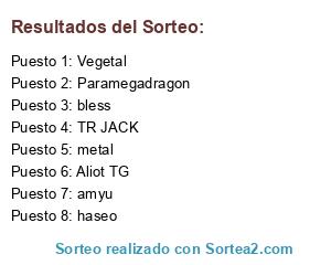 Lista de participantes: amyu, Aliot TG, bless, TR JACK, Paramegadragon, haseo, metal, Vegetal.