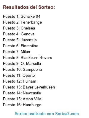 Lista de participantes: Sampdoria, Schalke 04, Fenerbahçe, Blackburn Rovers, Milan, Newcastle, Chelsea, Hamburgo, Juventus, Aston Villa, Oporto, Fiorentina, Bayer Leverkusen, O. Marsella, Genova, Fulham.