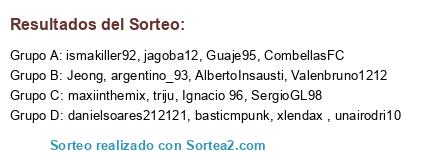 Lista de participantes: Ignacio 96, argentino_93, CombellasFC, Valenbruno1212, AlbertoInsausti, SergioGL98, ismakiller92, basticmpunk, triju, xlendax , danielsoares212121, Guaje95, maxiinthemix, jagoba12, Jeong, unairodri10 .