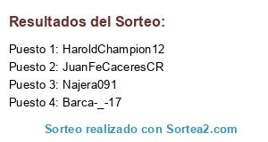 Lista de participantes: Barca-_-17, JuanFeCaceresCR, HaroldChampion12, Najera091.