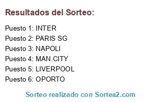 Lista de participantes: NAPOLI, MAN.CITY, INTER, LIVERPOOL, OPORTO, PARIS SG.