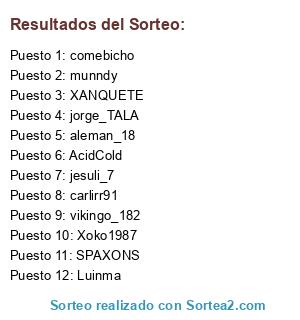 Lista de participantes: manuel, miki, carrillo, noli, victor, mikel, abra, antonio civil, arturo, cristian, ivan, mata, chechu, pablo, santi huertas, sergio.