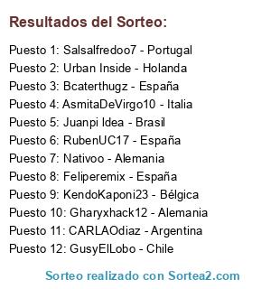 Lista de participantes: KendoKaponi23 - Bélgica, Salsalfredoo7 - Portugal, RubenUC17 - España, GusyElLobo - Chile, Juanpi ldea - Brasil, Bcaterthugz - España, Nativoo - Alemania, Gharyxhack12 - Alemania, Feliperemix - España, CARLAOdiaz - Argentina, AsmitaDeVirgo10 - Italia, Urban Inside - Holanda.