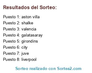 Lista de participantes: valencia, city, liverpool, shalke, galatasaray, juve, girondins, aston villa.