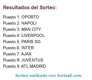Lista de participantes: AJAX, JUVENTUS, NAPOLI, MAN.CITY, INTER, LIVERPOOL, ATL.MADRID, OPORTO, PARIS SG.