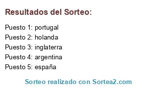 Lista de participantes: españa, holanda, brasil, portugal, argentina, inglaterra.