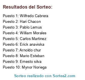 Lista de participantes: Mario Esteban, Pablo Lemus, Hari Chacon, Mynor Noriega, William Morales, Ernesto silva, Erick anaviska, Wilfredo Cabrera, Carlos Martinez, Arnoldo chur.
