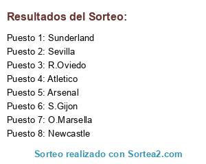 Lista de participantes: S.Gijon, Newcastle, Sunderland, R.Oviedo, Sevilla, O.Marsella, Arsenal, Atletico.