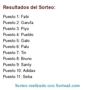 Lista de participantes: Santy, Fabi, Bruno, Galo, Piyo, Garufa, Adi2, Tin, Palu, Pueblo, Seba.