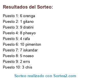 Lista de participantes: 1 gitano, 2 errs, 3 chis, 4 rafa, 5 noaso, 6 orenga, 7 iskandar, 8 phasyo, 9 dratini, 10 pimenton.