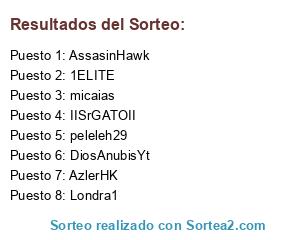 Lista de participantes: DiosAnubisYt , AzlerHK , AssasinHawk , DemirGalvis , micaias , zH4cK1nGI , KARL1TOS , Londra1 , 1ELITE , peleleh29 , xFuckStyleS4 , llxlDzCarlosMxll , uTenz , IISrGATOII.
